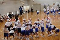 蒸し暑い体育館の中で、一生懸命ならび方の練習をしていました。
