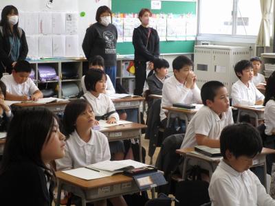 立命館大学の先生と学生の方が、お天気の悪い中、6小学校にお越しくださいました。