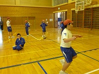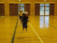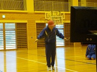 全校合同で体育が行われました。短縄を異学年で数え合ったり、8の字や長縄を縦割り班で跳んだりして、協力して授業を進めました。長縄の練習では、みんなで声を出してタイミングよく跳ぶことができました。
