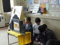 昨年の1・2年生の道徳に引き続き、本日は5.6年生の道徳の授業でPTA副会長の山下さんをゲストティーチャーとしてお呼びし、アマメハギのお話をしてもらいました。高学年の子どもたちは、鵠巣地区の大切な文化を守っていく意義について深く学びました。山下さん、お忙しいところありがとうございました。