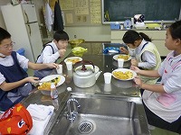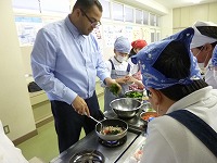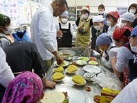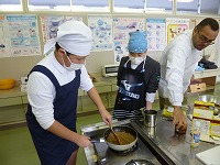 ALTのライアン先生の第2弾クッキングが行われました。本日のメニューは、フレンチトーストとオムレツでした。びっくりするぐらいのチーズを入れたオムレツはとても好評でした。このオムレツはライアン先生のおふくろの味だそうです。子どもたちもとても喜んでいました。ライアン先生ありがとう。