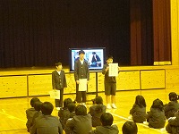 図書委員会の読み聞かせがありました。ゆっくりとはっきり、強弱をつけて、間をとって上手に読み聞かせることができました。他の児童たちも静かに聞いていました。