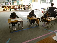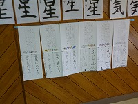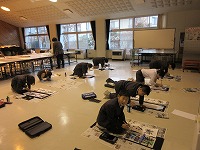 書き初め大会が行われました。1・2年生は硬筆、3年生からは毛筆をしました。みんな真剣に集中して、とても上手に書くことができました。