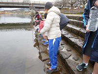 学校で育てていたヤマメの卵が孵化し、全校児童で三角州へ行き、ヤマメを放流しました。孵化したヤマメが大きく成長してくれることを願いながら放流をしました。