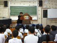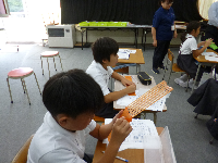 輪島市社会福祉協議会の方々をお呼びして、3・4年生に福祉講座を開いていただきました。白杖を使ったり、点字を書いてみたりして目の不自由な人たちの気持ちになって様々な体験をさせてもらいました。体験を通して、困っている人たちを助けたいという気持ちが子どもたちに芽生えたようでした。