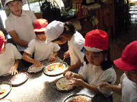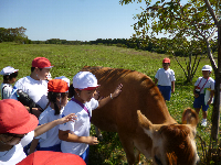 今日は、1年生から4年生までの楽しい遠足でした。(5・6年生は宿泊体験学習中)バスの中では、クイズをしたり歌をうたったりして盛り上がりました。寺西牧場では、かわいい牛さんたちと触れ合いました。ケロン村では、おいしいピザづくりをして、たくさん遊びました。みんな仲良く遊び、はしゃぎ回った、とてもとても楽しい遠足でした。