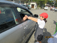 交通安全ボランティア活動で1・2年生が鵠巣公民館前で運転手さんたちに折り鶴を渡しました。「安全運転してください」と子どもたちが笑顔で折り鶴を渡すと、運転手さんたちもとても喜んでいました。みなさん事故のないように気を付けて運転してください。
