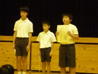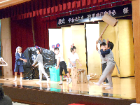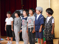 ホテルこうしゅうえんで行われた敬老会に1・2年生が参加し、「おむすびころりん」の劇を発表しました。元気いっぱいの掛け声や、おじいちゃんおばあちゃん役、ねずみ役の子どもたちの名演技を、たくさんの地域の方に観ていただきました。一生懸命がんばったね。