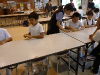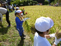 春に植えた田んぼの苗が大きくなり、立派な稲となりました。今日は、3・4年生が稲刈りを体験しました。鎌を上手に使用して稲を刈り、ひもで結んではざにかけました。地域の方には、日々の田んぼのお世話や稲刈りのご指導をしていただきました。ありがとうございました。