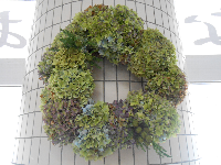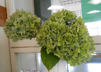 鵠巣小学校にはたくさんの紫陽花が咲き、学校を華やかにしてくれます。そのため「あじさい学校」とも呼ばれています。これは、秋の紫陽花です。夏に咲く紫陽花とは違った色で、風情があってとても素敵ですね。夏だけでなく、秋にもこんなにも綺麗な紫陽花が咲いています。さすがは「あじさい学校」ですね。