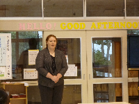 2学期から新しいALTのサラ・ジェーン・ハンノ先生と一緒に外国語の勉強をします。今日はみんなに自己紹介をしていただきました。アメリカのことをいろいろ教えていただきたいと思います。サラ先生よろしくお願いします。Nice to meet you!