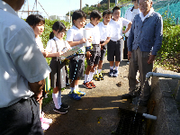 3・4年生が総合学習で櫟原北代比古神社(いちはらきたしろひこじんじゃ)近くの「神様池」に見学に行ってきました。「神様池」と呼ばれる理由や水源などについて神社の宮司さんにインタビューをしてきました。詳細については10月の公民館祭りで発表させていただきます。