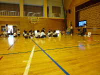 全校児童でスポチャレいしかわのシャトルボールに挑戦します。新記録と金メダルを目指して一生懸命みんなでがんばります!