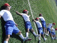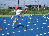 6年生が体育のハードル練習のためにマリンタウンへ行ってきました。輪島市生涯学習課の谷内さんの指導を受けて、広いグラウンドで思いっきり体を動かしました。