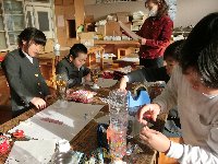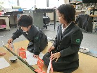 図工の授業で、3年生は作った作品に名前をつけたり、友達の作品をみて感想を言い合ったりしていました。