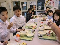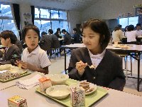 子どもたちは、うれしそうに担任の先生からお餅を受け取っていました。