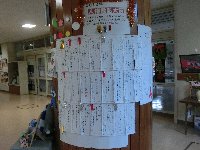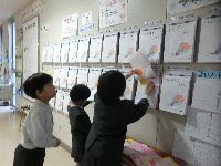「ありがとうの窓」に貼ってあるメッセージを、子どもたちはうれしそうに見ていました。