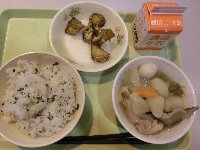 今日の給食は、わかめご飯・含め煮・大学芋・牛乳でした。