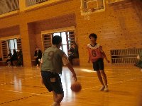 河原田小学校・三井小学校の5・6年生と学校の枠を超えて合同チームを組んだり、学校ごとで試合をしたり、みんないきいきした表情でバスケットを楽しみました。