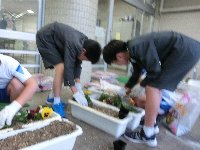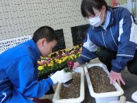 5・6年生が公民館からいただいたパンジーを植えました。