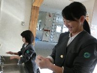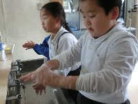長休みや掃除後など、あわあわ手洗いの歌を歌いながら、親指や手首などの洗い残しになりがちな箇所を意識して手洗いをしています。