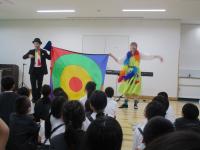 ガーガーズのお二人とマジシャン・ヒデさんが、1・2年生のためにあそび歌やマジックを披露してくださいました。