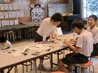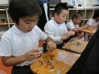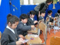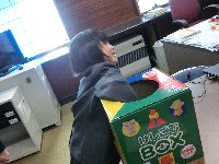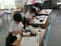 それらを使って、1・2年生が輪投げ、くじ引き、松ぼっくりを使ったけん玉…など楽しい遊び道具を作成中です。