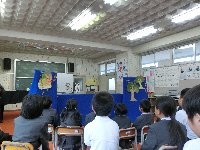 こうしゅうえんで行われた敬老会に1・2年生が参加し、「どっこいしょだんご」の劇を発表しました。