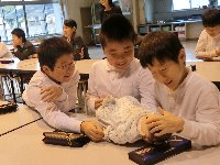 音楽の時間には、「チャレンジ」の歌詞の意味を考え、どのように歌うと聞いている人に伝わるかを歌い方を工夫しながら練習していました。