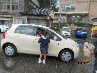 「安全運転してください」と子どもたちが折り鶴を渡すと、運転手さんたちは「ありがとう」と笑顔で受け取ってくださいました。