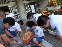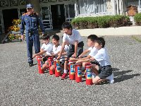 その後、消防の方から消火器の使い方を教えていただき、実際に体験しました。