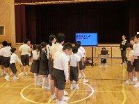普段と違い今回は休み時間の避難訓練でしたが、子どもたちは自分のいる場所から一番近いところから、すばやく避難することができました。