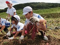大きなさつまいもがいくつもできていて、収穫をよろこぶ子どもたちの様子がみられました。
