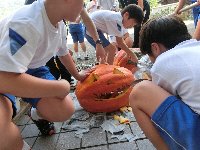 そこで今日は5・6年生がジャック・オ・ランタンをつくりました。