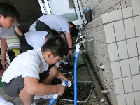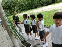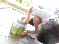 夏休み前に5年生がメダカの水槽を掃除してくれました。