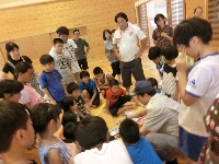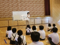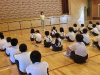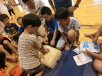 子どもたちも救急救命士の方のお話を真剣に聞き、実際に心臓マッサージを体験しました。
