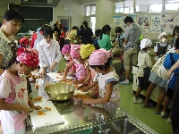 台風の接近に伴い、夏休み親子キャンプは学校で親子料理教室に変更になりました。