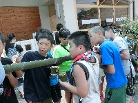 そのあと、竹で作った手作りそうめん流し機と竹の器でそうめんを食べ、カレーライスを食べました。