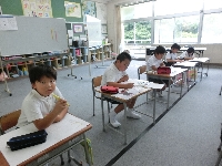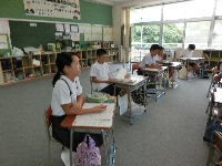 夏休みの宿題の確認をしたり、5年生は漆芸美術館で巨匠の話を聞いたりしました。