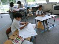 子どもたちは自分の気に入った美術品の絵を写真と見比べながら丁寧に書いていました。