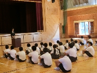 始業式では校長先生から、目標を立ててがんばってほしいというお話がありました。