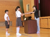 その後、夏休みの間に行われた水泳大会の表彰式がありました。