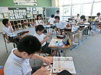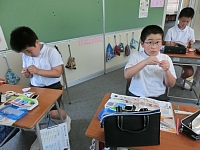 5・6年生が家庭の授業で裁縫をしました。