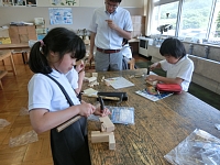3.4年生がとんかちを使って、コリントゲームや造形遊びをしました。