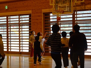 6年生が「卒業するまでに先生とバスケットボールの試合をしたい」ということで、昼休みに行いました。
