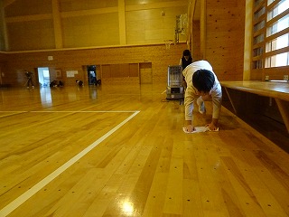 全校水ぶきで体育館をきれいにしました。