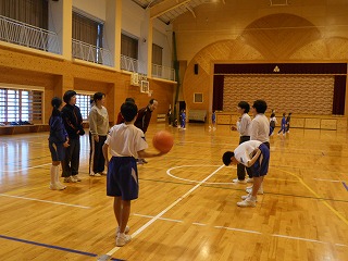 昼休みに6年生対先生でバスケットボールの試合をしました。