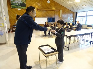 児童クラブイラスト展と書き初め、子供作品展の表彰を行いました。