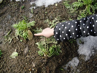 生活で1・2年生が野菜を見に行くと、また動物に荒らされていました。