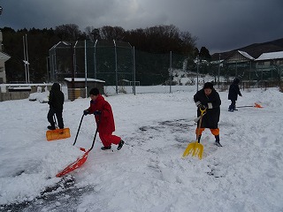 今日5年生が、明日の授業参観のために雪かきをしてくれました。